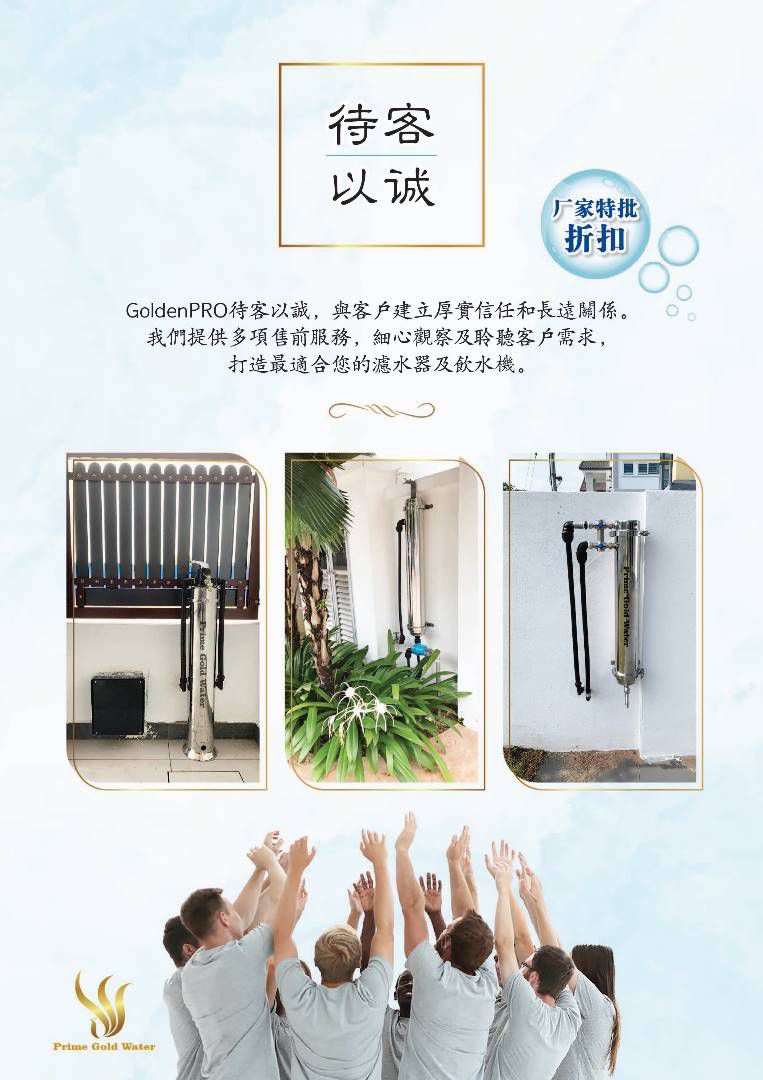 Prime Gold Water provides complete water filter and enhanced water system for residential, commercial and industrial scale. Based in Ipoh, Perak, we have served over ten thousand clients in providing healthy filtered water supplies in promoting healthy lifestyle.